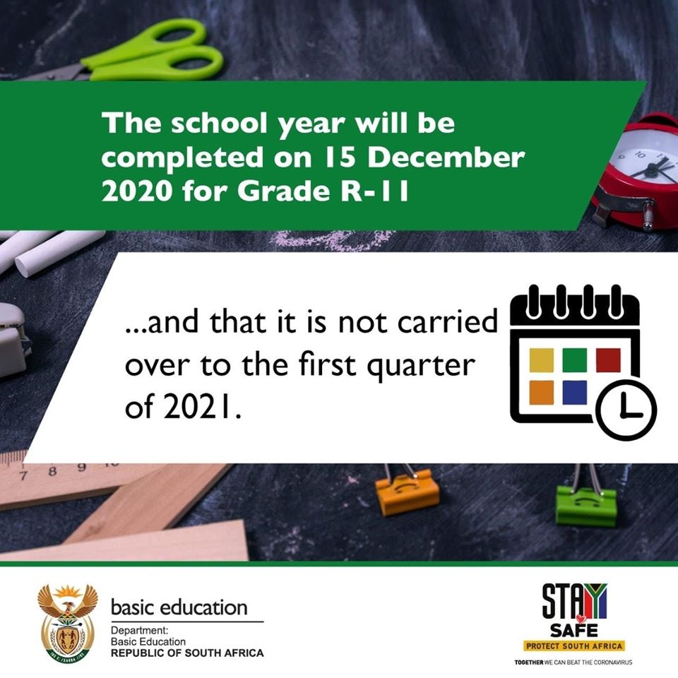 3. The school year will be completed on 15 December 2020 for Grade R-11.