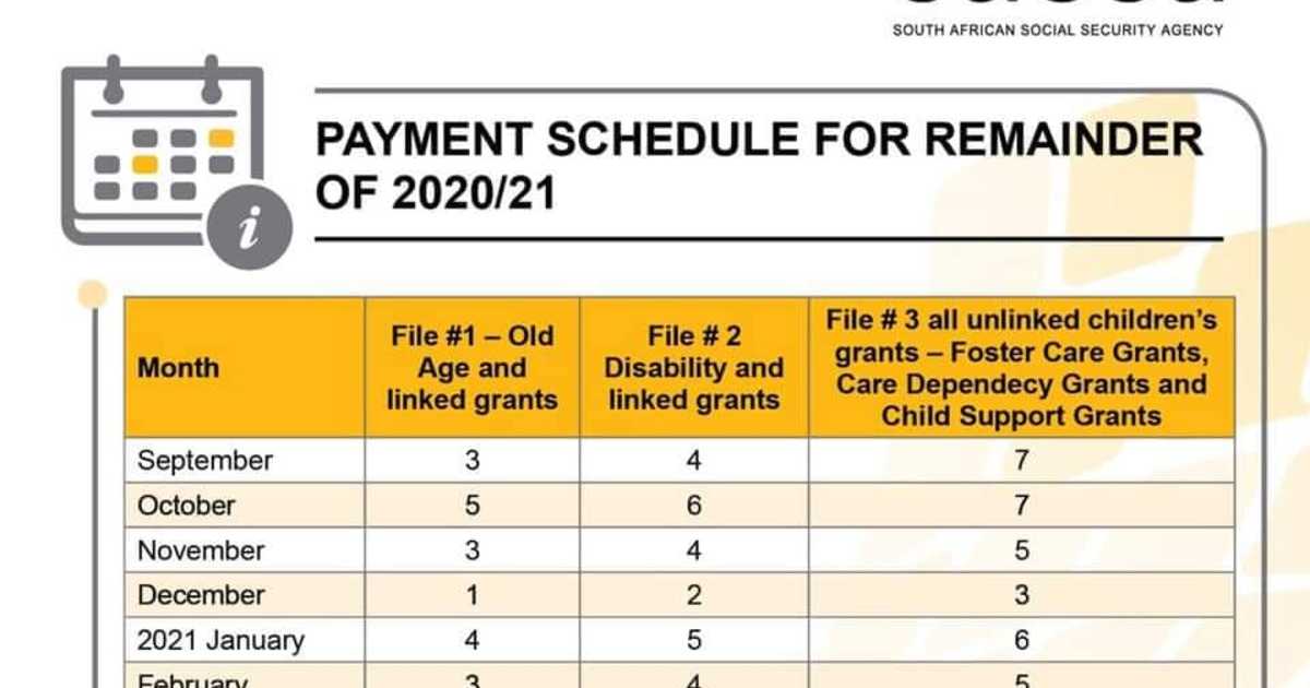Please note the grant payment schedule as supplied by SASSA.