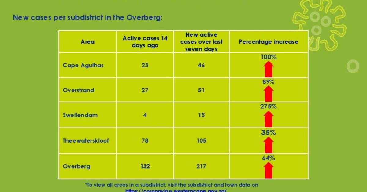 Over the past 7 days, the Overberg has seen a 64% increase in new COVID-19 cases and 6 deaths. We urge the residents to remain cautious and vigilant.