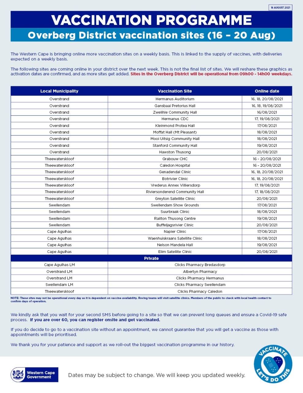 Sites in Overstrand will be operational from 09:00 - 14:00 on weekdays.