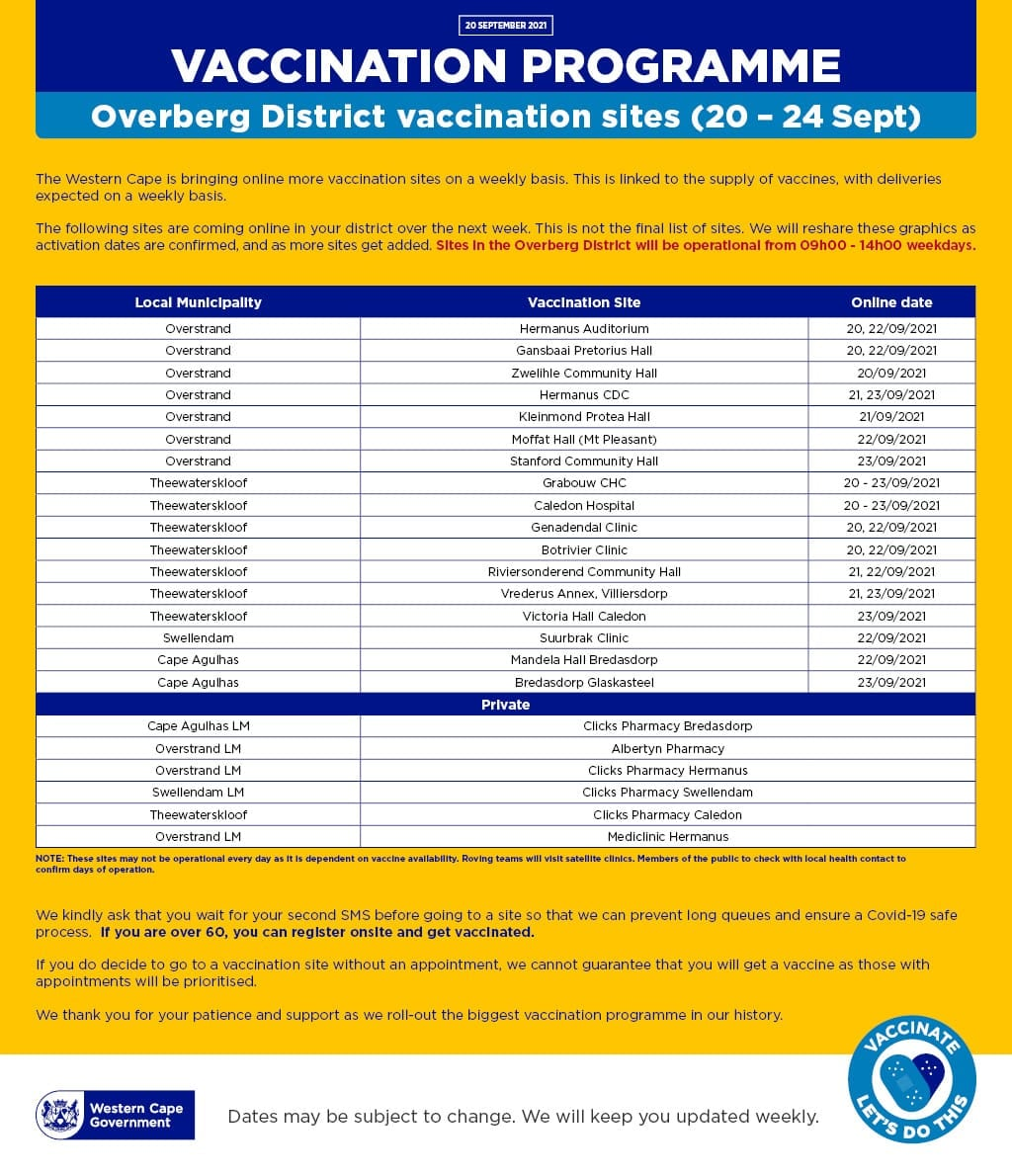 • Hermanus CDC: 21 & 23 September 2021