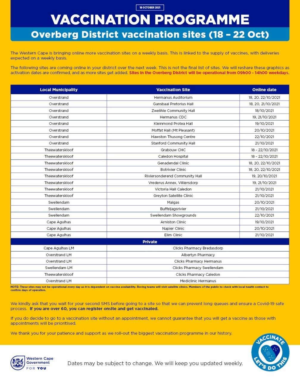 Sites in Overstrand will be operational from 09:00 - 14:00 on weekdays.