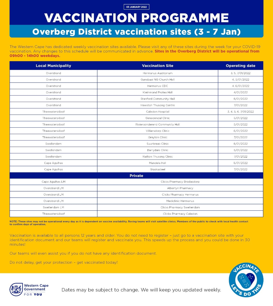 Sites in Overstrand will be operational from 09:00 - 14:00 on weekdays.