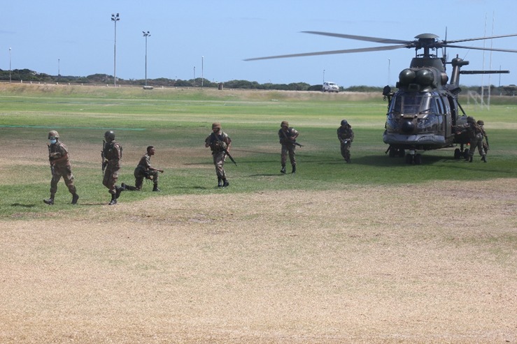 He had the opportunity to board a Namacurra harbour patrol boat from the Navy for a patrol. The Deputy Mayor also observed a trooping from an SA Air Force Oryx helicopter deploying soldiers for a rapid Vehicle Control Point (VCP).