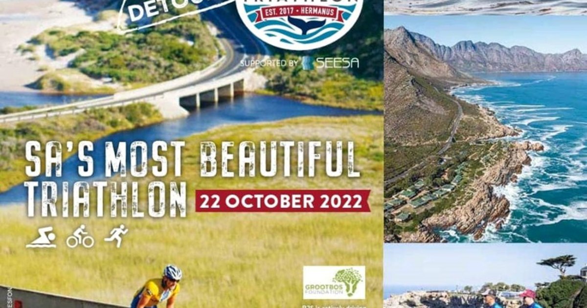 For the shorter ‘sprint’ event in Hermanus, an estimate 45 athletes will start at 08:30 with a 750m swim in the Hermanus New Harbour, cycle 20km to Vermont and back before running 5km along the Main Road and the Cliff Path.