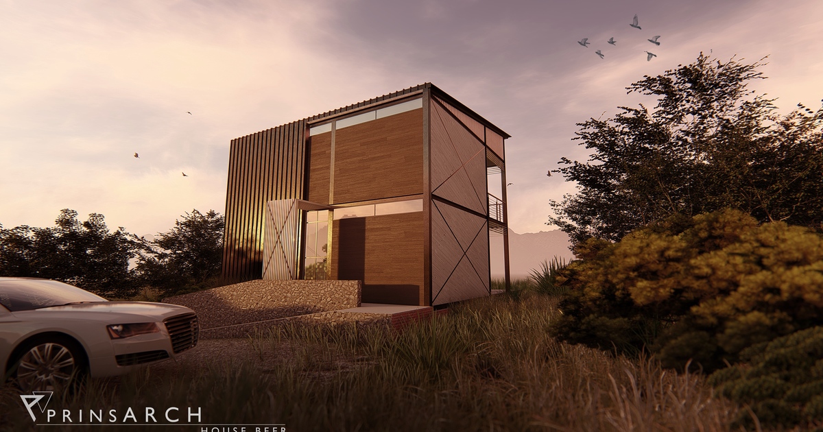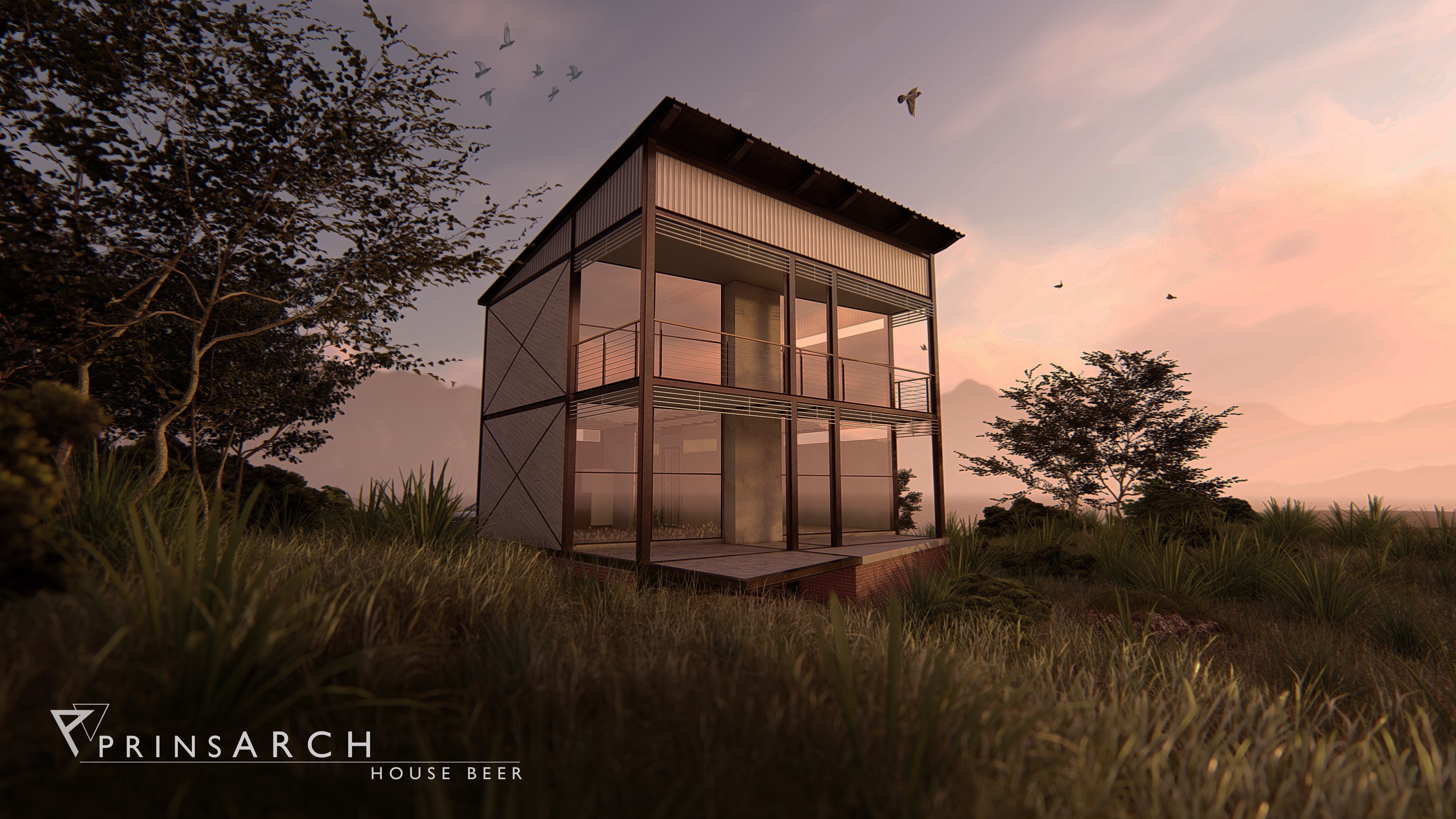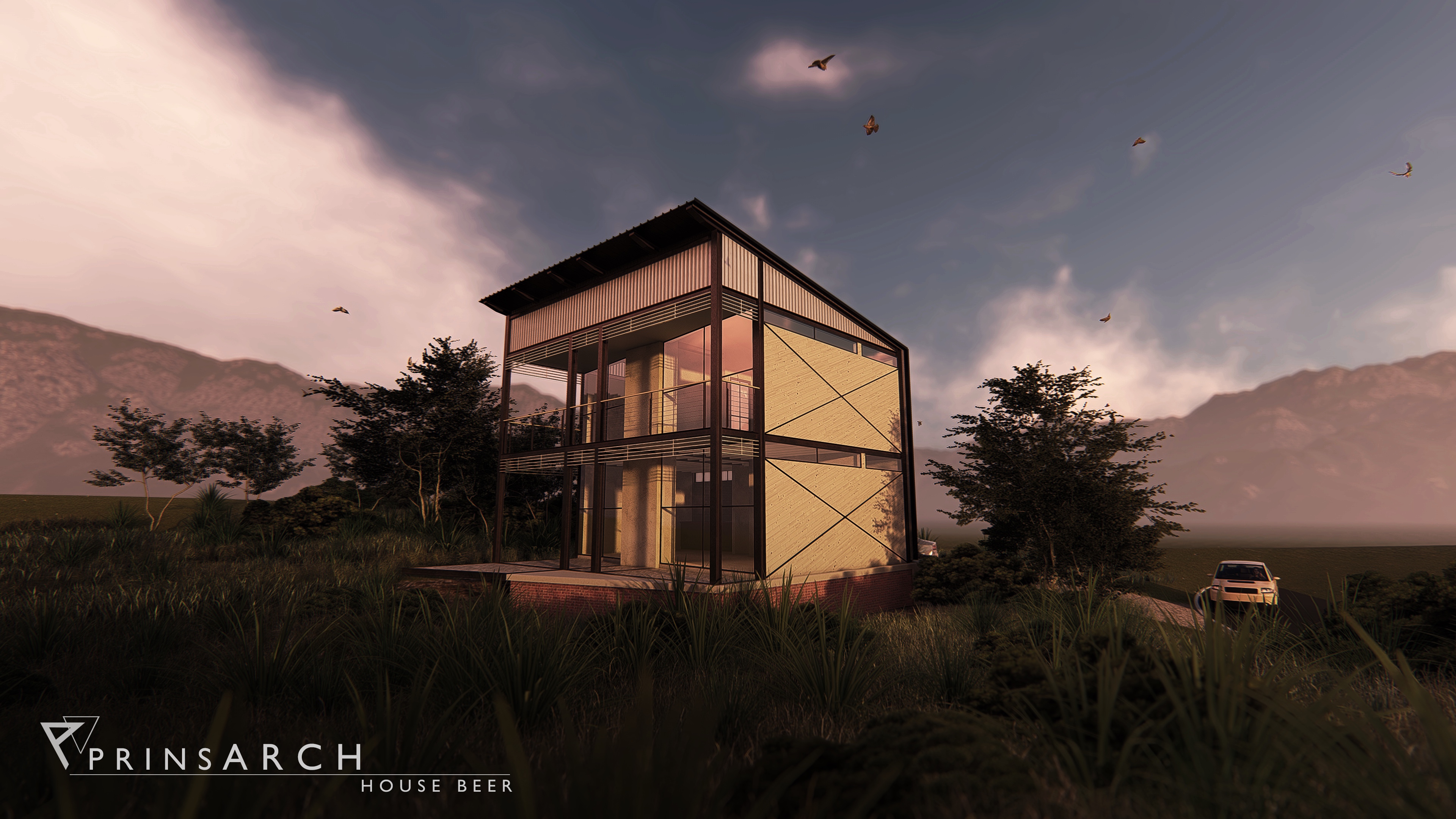 The talented Johan du Toit did some brilliant renditions of the proposed cottage of the Beer family. It is to be build next year, but we wanted to see how the combinations of steel, glass, bricks and stone will look like.