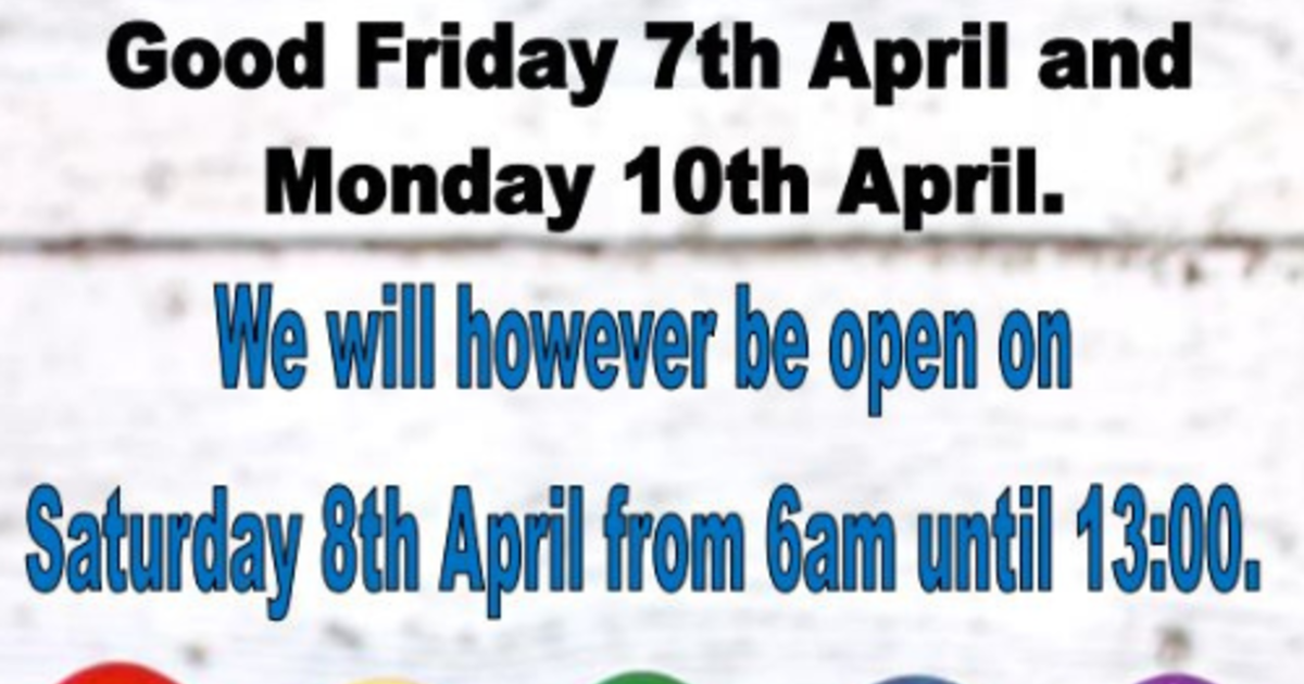 We will however be open on Saturday, 8 April from 06:00 to 13:00.