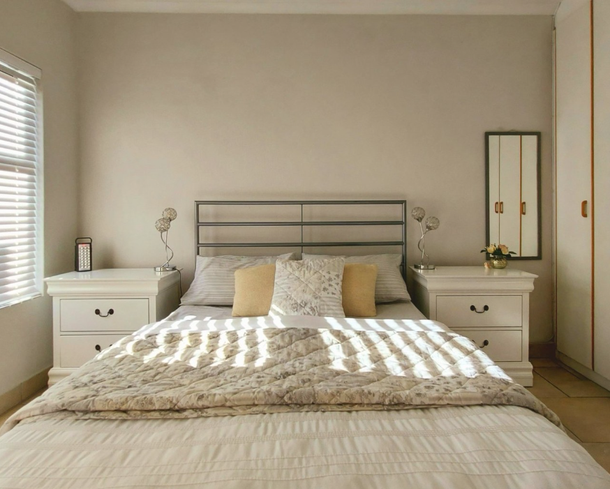 Step into this immaculate home from the front patio into the open plan lounge, flowing to the modern kitchen with a granite breakfast counter. The kitchen flows into a cozy braai and dining area. Two sunny bedrooms with en-suite bathrooms with built-in cupboards. A study corner ideal for the work from home person.