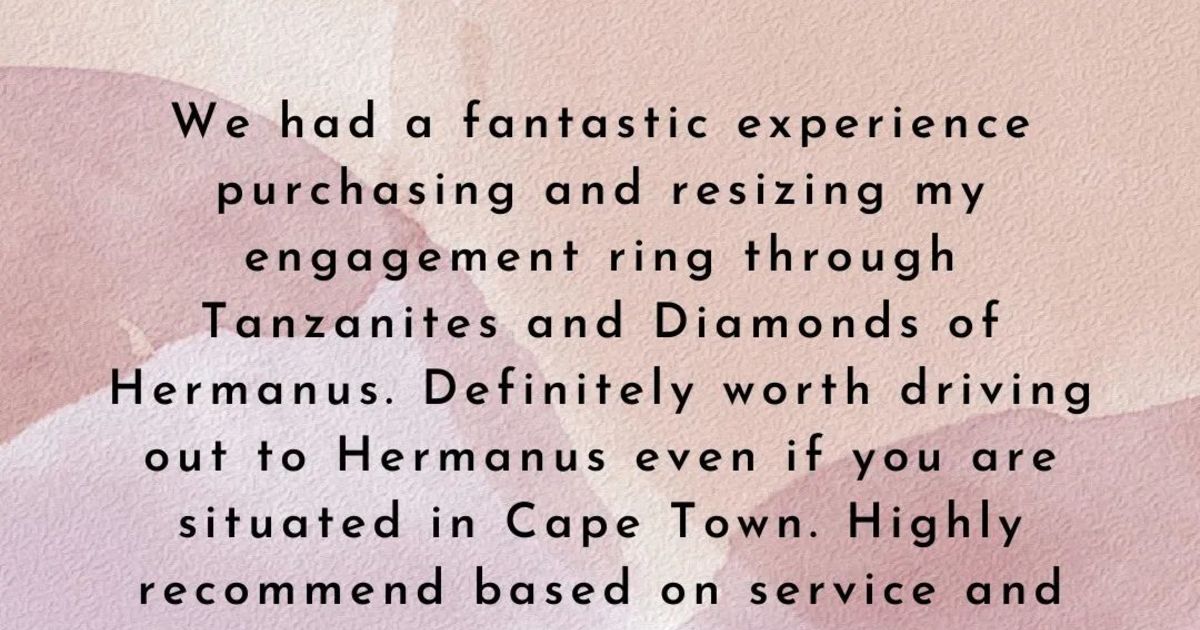 Take a look at what one of our customers had to say about their experience with Tanzanites and Diamonds of Hermanus!