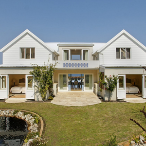 Situated 6km East of Hermanus on a private estate. Positioned in between mountains and a lagoon, the property gives the feeling of water and life flowing down the mountains, through the gardens and into the house.