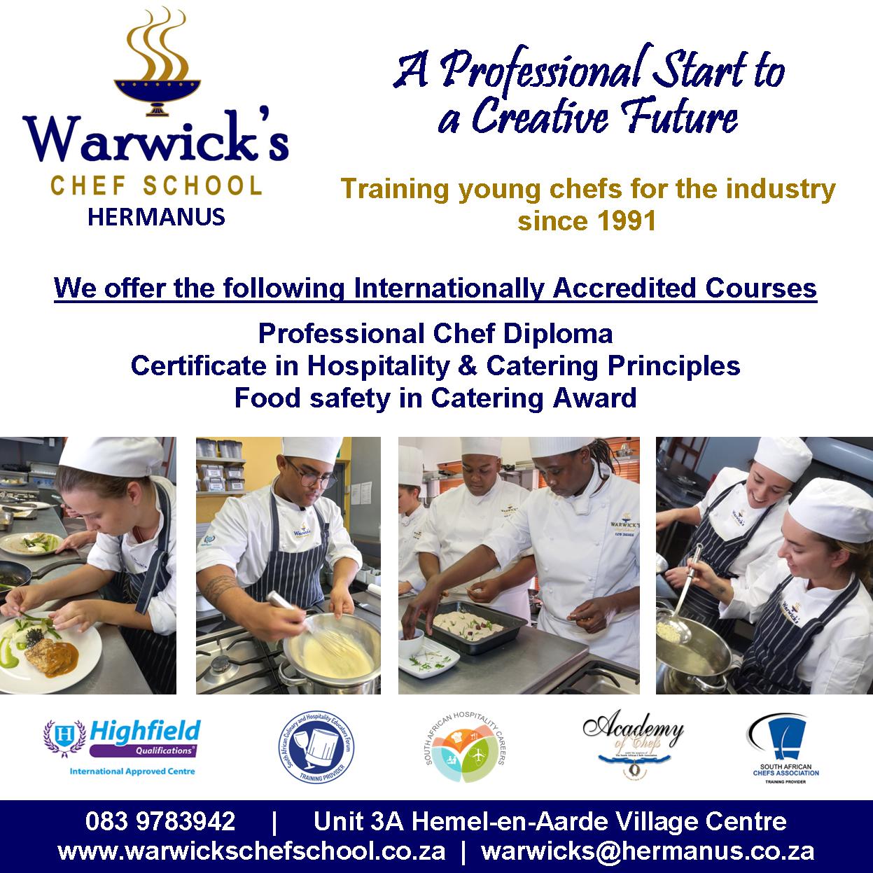 Warwick’s Chef School was established in 1991, and is one of the fore runners in culinary training in South Africa, for young students who want to enter the hospitality industry as a chef. We offer internationally accredited full time and part time courses.
