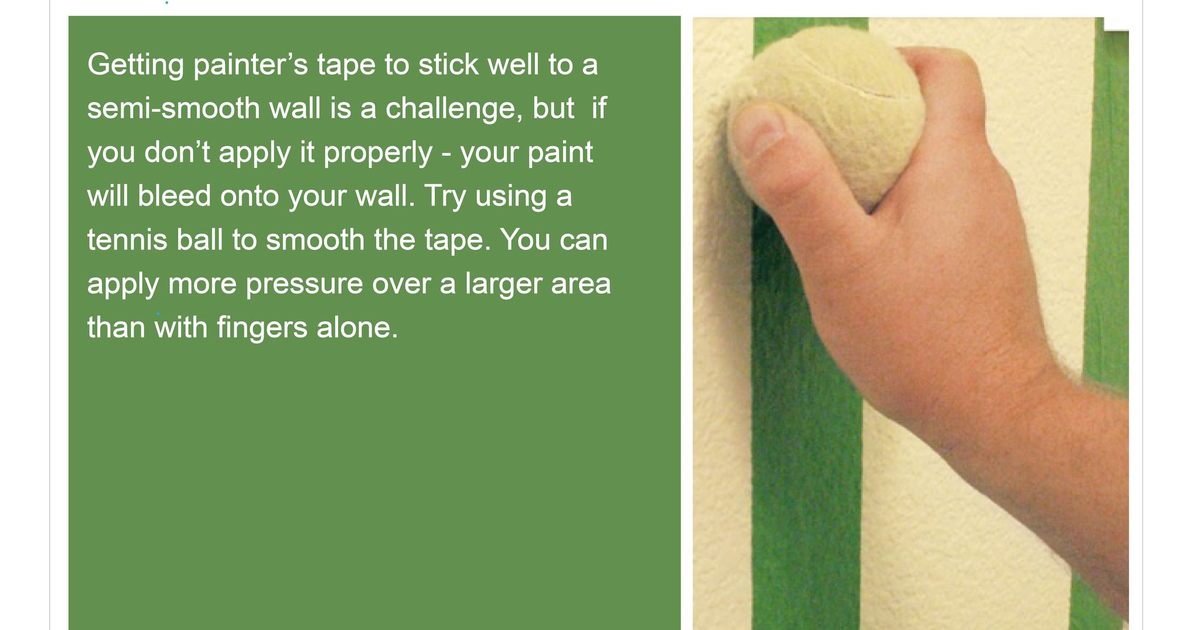 Getting painter's tape to stick well to a semi-smooth wall is a challenge, but if you don't apply it properly - your paint will bleed onto your wall. Try using a tennis ball to smooth the tape. You can apply more pressure over a larger area than with fingers alone.