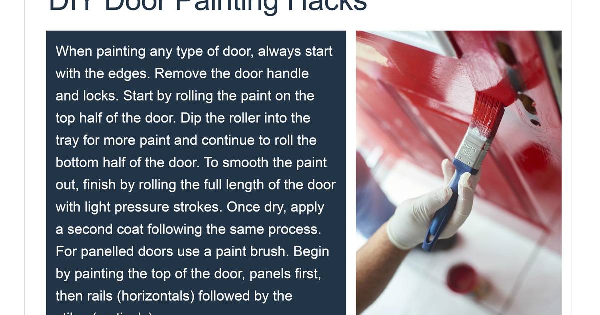 When painting any type of door, always start with the edges. Remove the door handle and locks. Start by rolling the paint on the top half of the door. Dip the roller into the tray for more paint and continue to roll the bottom half of the door. To smooth the paint out, finish by rolling the full length of the door with light-pressure strokes.