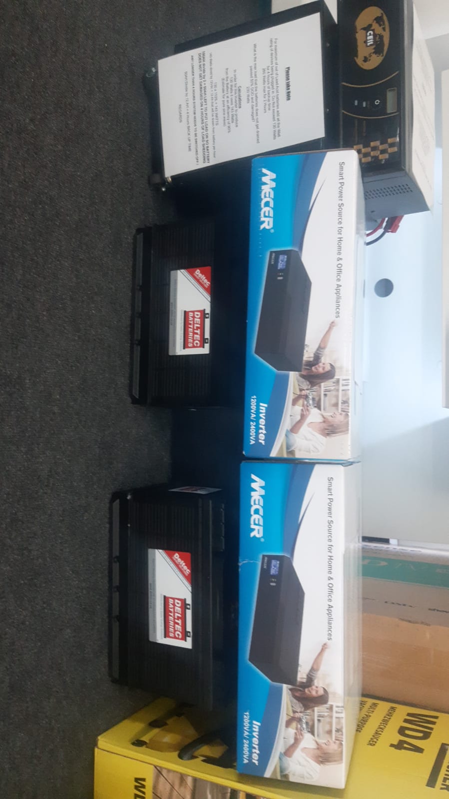 Inverter Mecer 2400VA/1440W and 2 x 105AH deep cycle batteries (battery wires included), perfect for load-shedding!