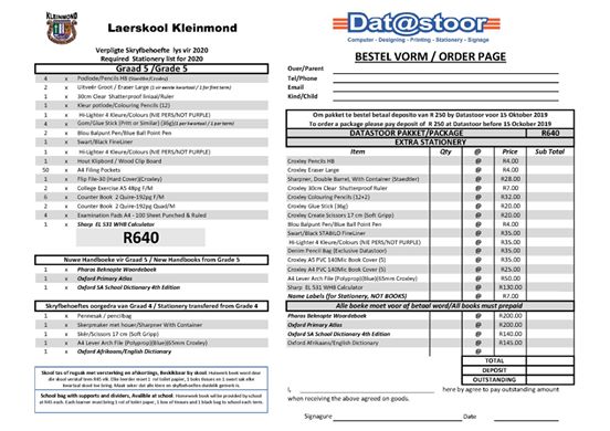 Back to school package for Laerskool Kleinmond now available to pre-order.
