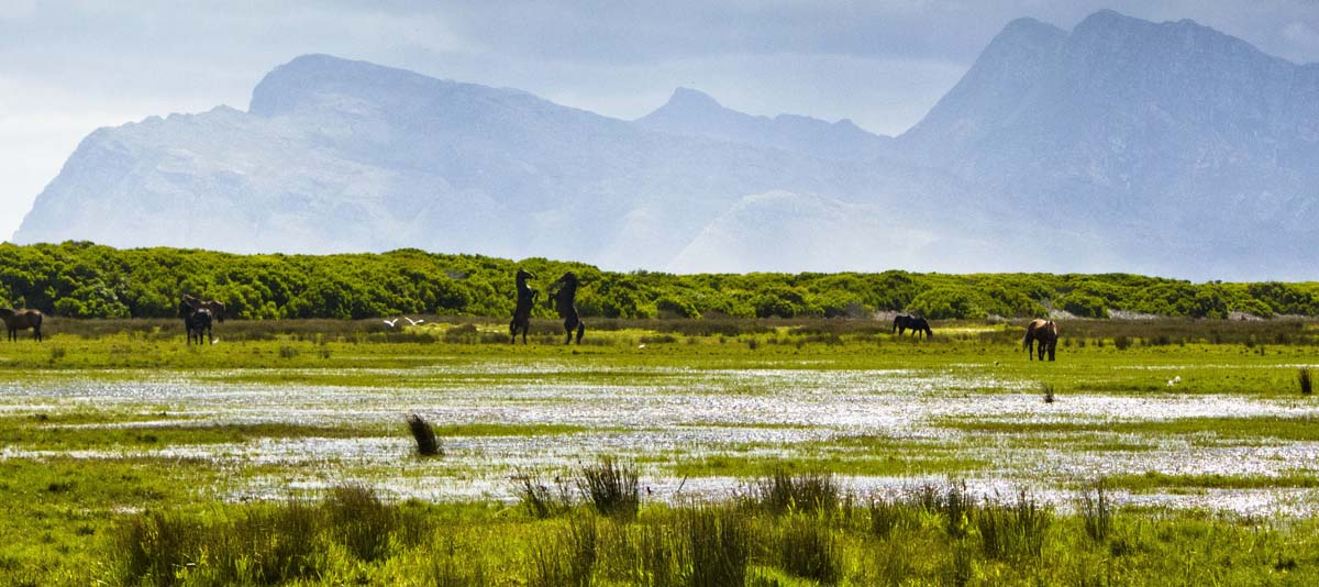 The lush open plains of the Rooisand Nature Reserve has become a popular spot for bird watching due to the nearby estuary and of course, the roaming grounds of the resident group of wild horses.