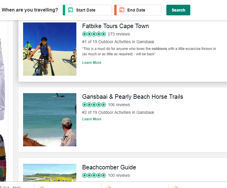 Our first TripAdvisor review was one year ago.... and now here we are at number two of Top Outdoor Activities in and around Gansbaai (Overstrand), 3rd in the Overberg District, and 15th in the entire Western Cape!