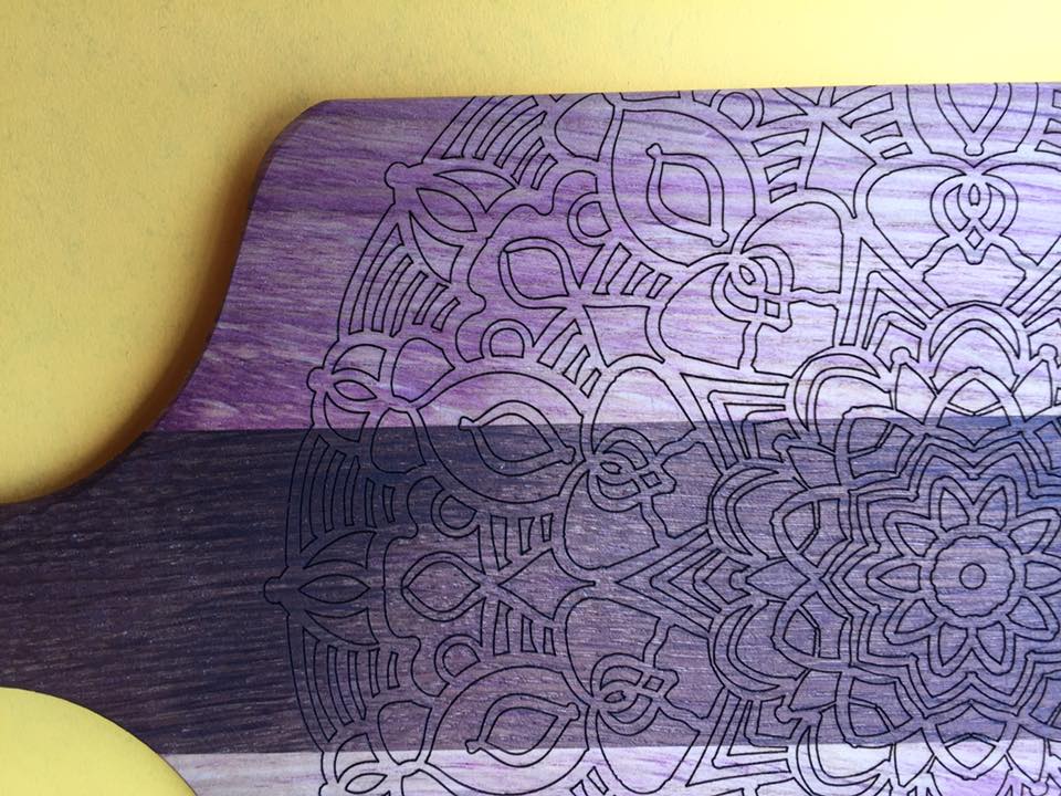 Feast your eyes on this gorgeous oak wine stained mini cheese board. Engraved with a beautiful mandala design.