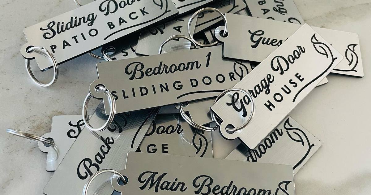 We made these modern, brushed steel look keyrings for a self-catering house called Penguin Walk, right next to the penguins, in Bettys Bay.