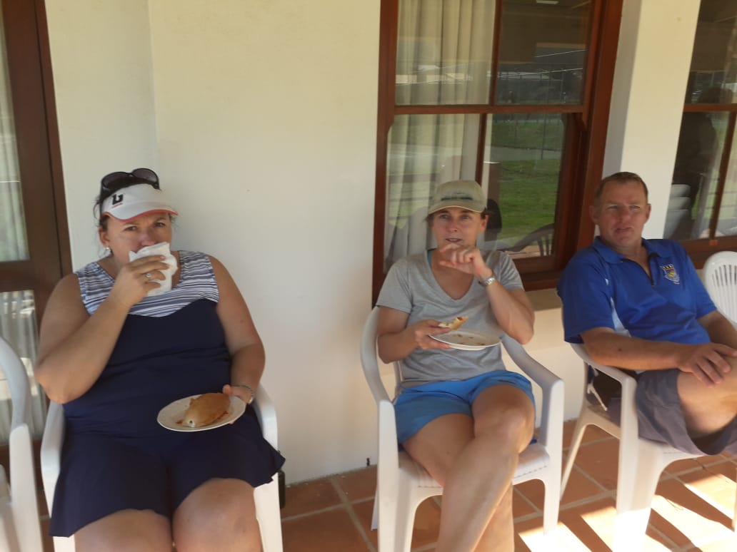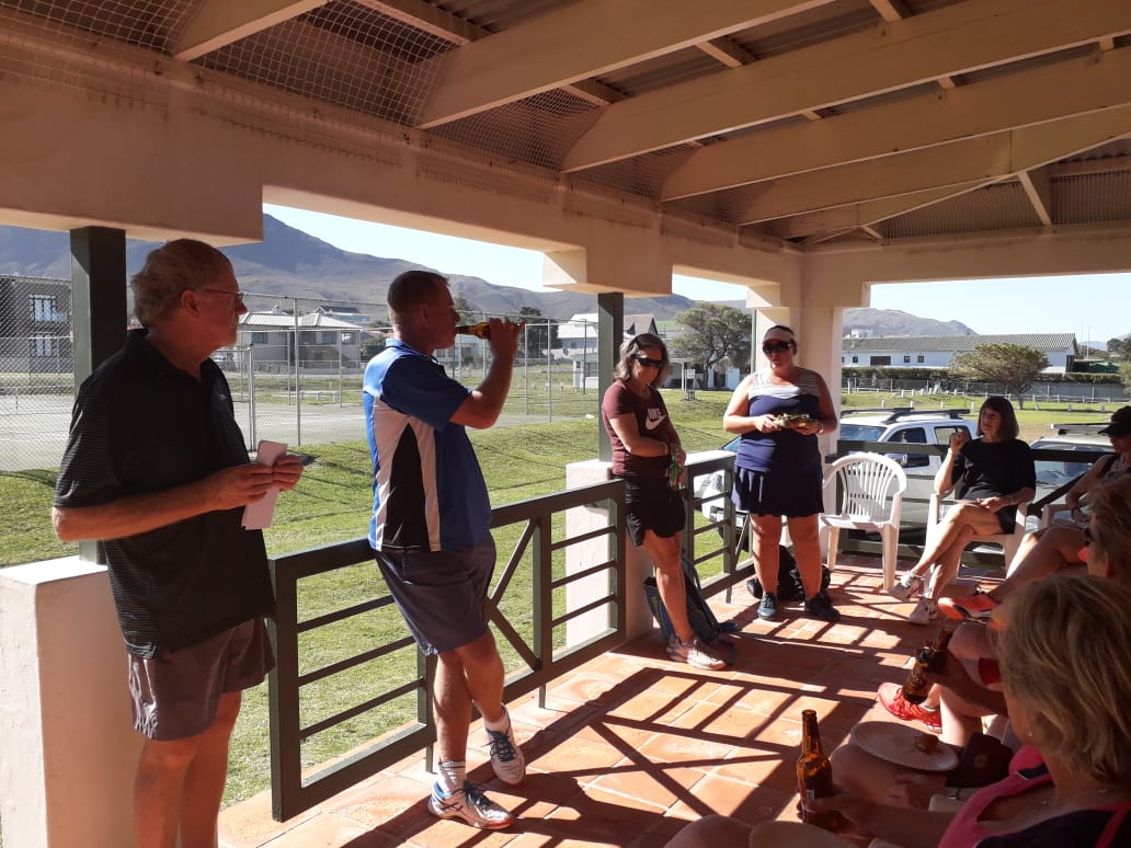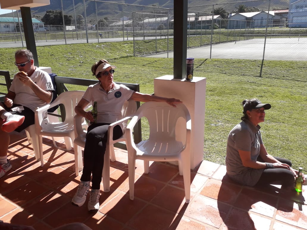 Ons het onlangs 'n baie lekker besoek van die tennisvroue van die Pinelandsklub hier by ons gehad. Ons het lekker versnaperinge gereed gehad en ook worsbroodjies vir middagete. Die kompetisie was in die vorm van 'n roundrobin. Daar was 'n A-groep en 'n B-groep. Die wenners van die A-groep was almal Kleinmonders, maar ons moet darem byvoeg dat daar mans ook in hierdie groep was.