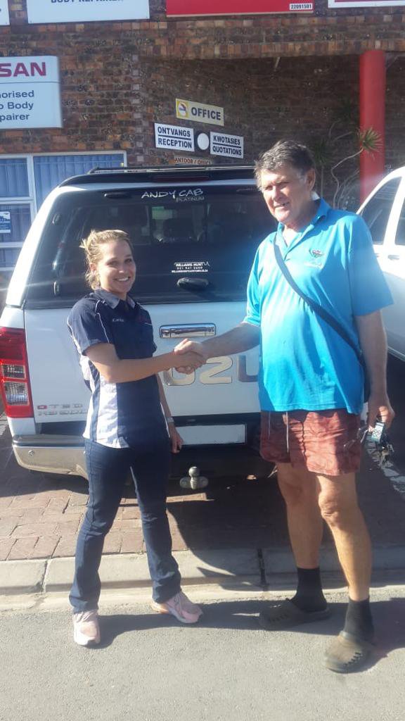 “Bitter goeie herstelwerk. My babatjie van 14 jaar oud lyk nou sommer weer spiekeries! Dankie julle, sal enige tyd Overstrand Panel Beaters aan te beveel.” Jan Retief, Google Review