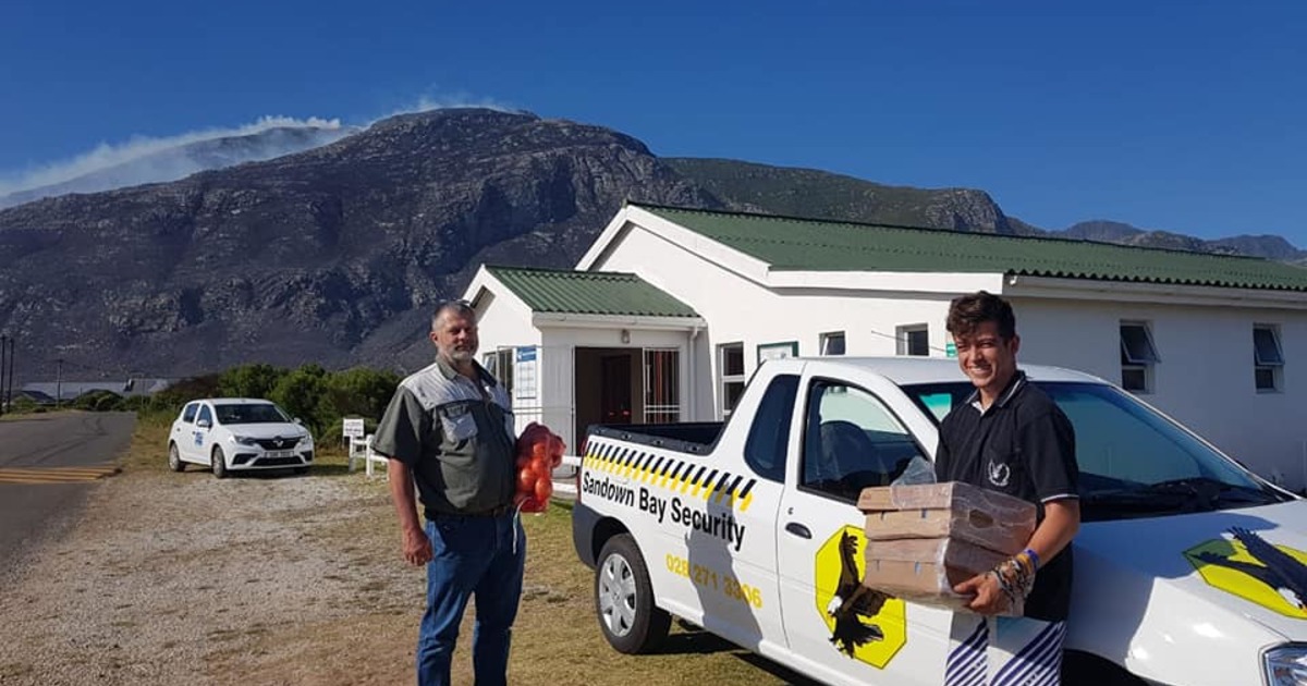 Brian van der Merwe and his son, Heinrich van der Merwe from Sandown Bay Security donating food supplies to the firefighters and volunteers.