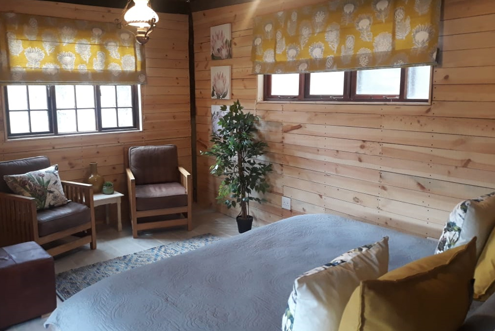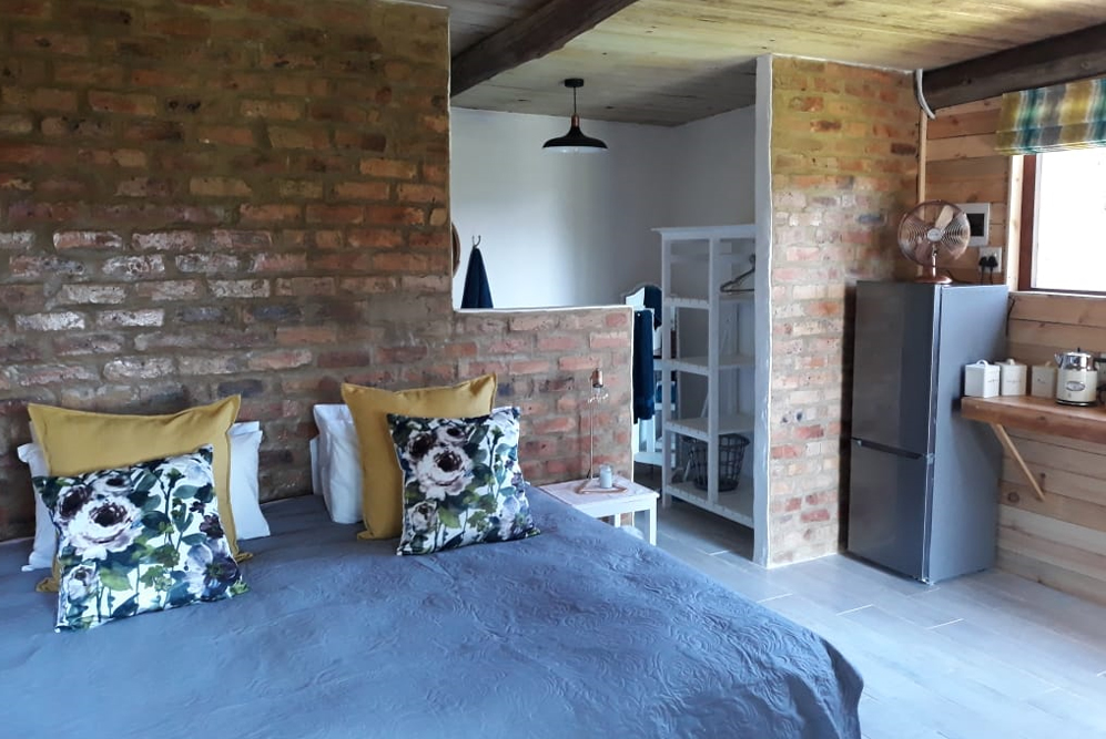 The Cabins at NJR Farm consist of three rustic cabins. Cabin 1 and 2 are the sleeping quarters, and each has a shower ensuite. Cabin 3 houses the open-plan kitchen and lounge as well as a patio with magnificent views of the countryside.