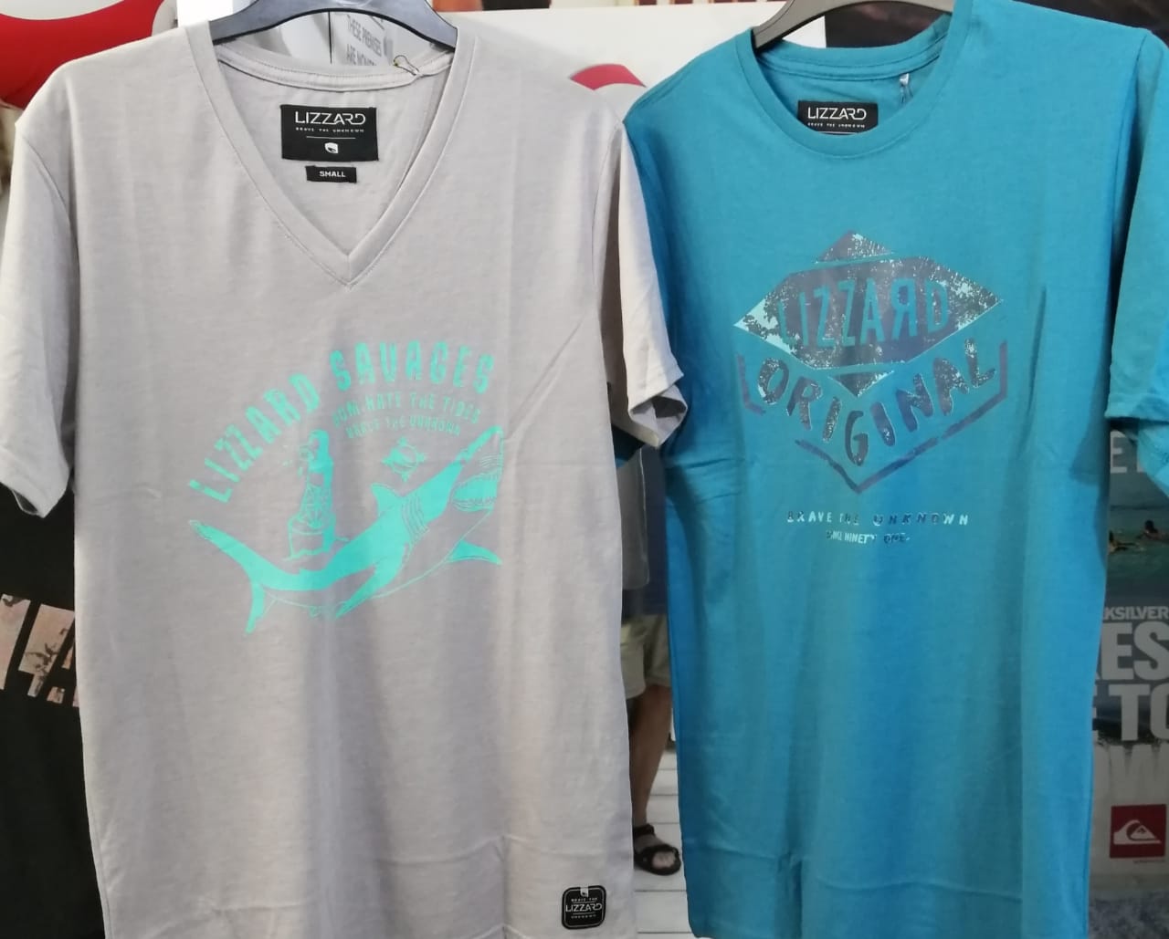 Summer clothing now in stock at Village Vibes Surf & Sport Shop. From short sleeves to sleeveless Lizzard men's t-shirts and many more!