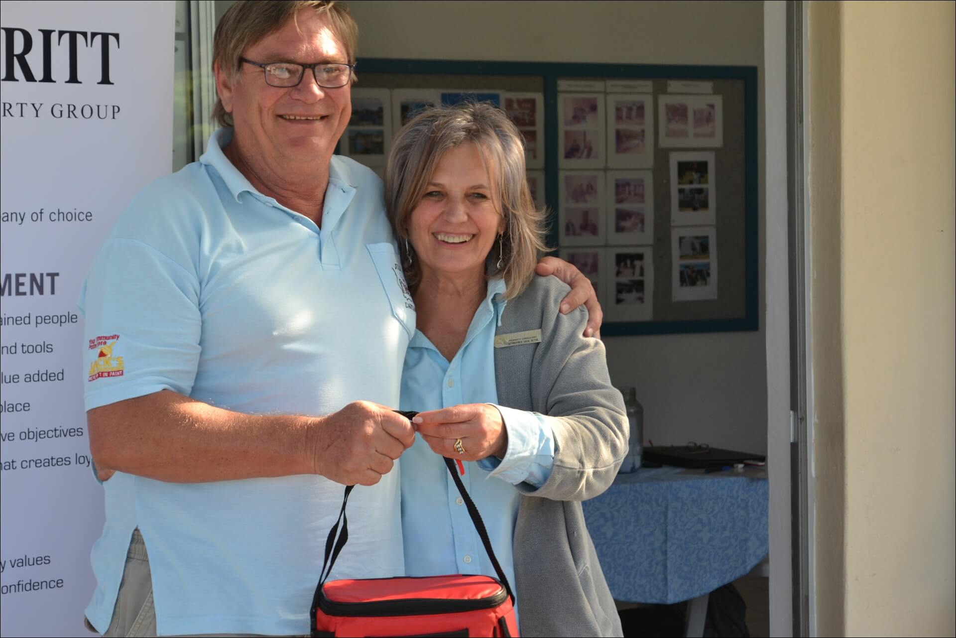 Een van ons Agulhas spelers, Hanneke van Papendorp, het ook ‘n hele Springbok geskenk om uit geloot te word. Dit was ‘n welkome toevoeging tot die klub se fondse. Hier trek Hanneke die wenners, Nelia en Derick Labuschagne se inskrywing.