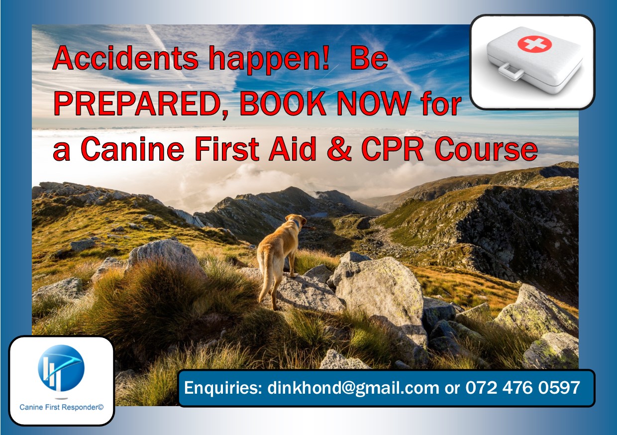 The Canine First Responder Course™ is available on demand (weekends only), and is currently only presented in Napier in the Western Cape, South Africa (about two hours' drive from Cape Town). 1 – 6 participants max.