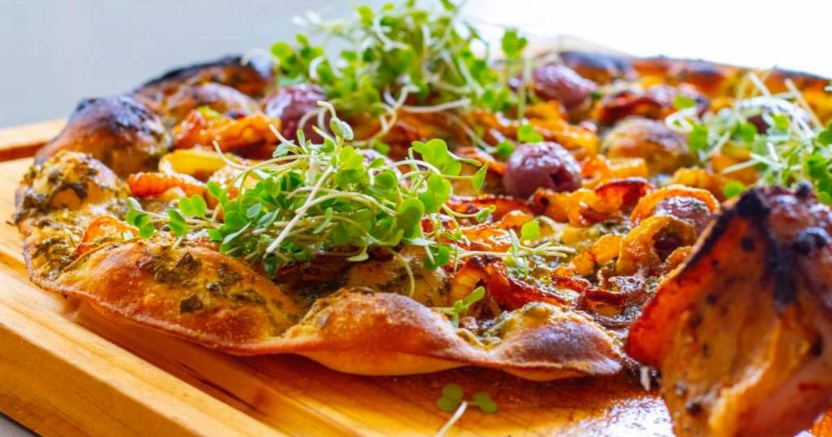 Our pizzas have a thin crust, derived from an old Italian recipe using 00 flour. Baked in our wood-fired oven to perfection.