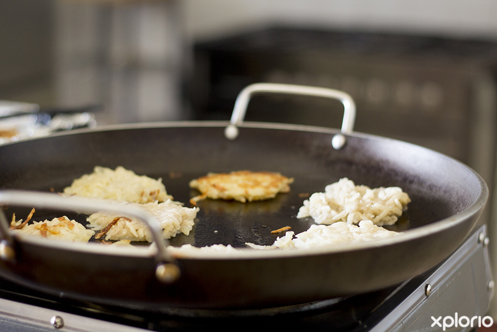 - Pork schnitzel (cheese sauce, baby potatoes and pumpkin fritter)
