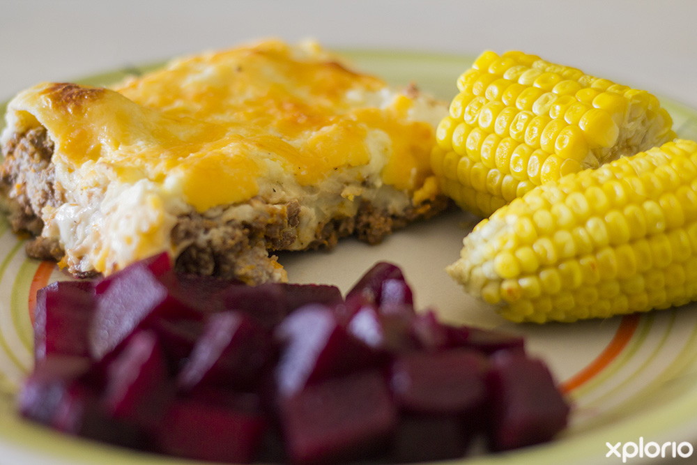 - Bolognese mince and vegetable bake (Greek salad and garlic bread)