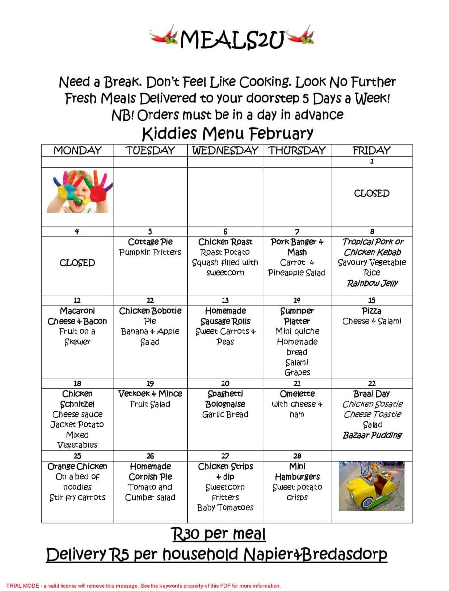 - The Kiddies Menu is subject to change dependant on the availability of ingredients.