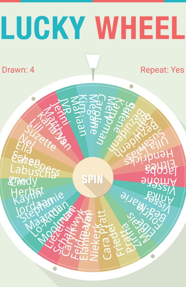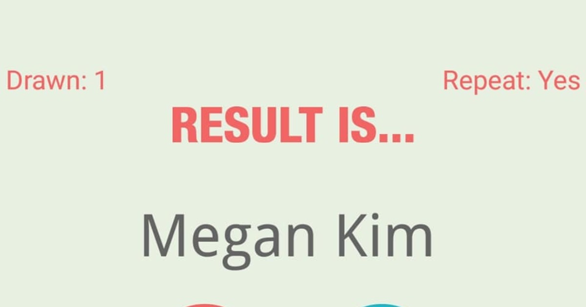 Megan Kim's name was drawn twice, therefore we had to spin again.