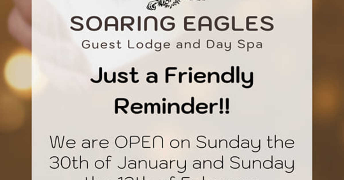 For more information, contact Soaring Eagles Guest Lodge and Day Spa.