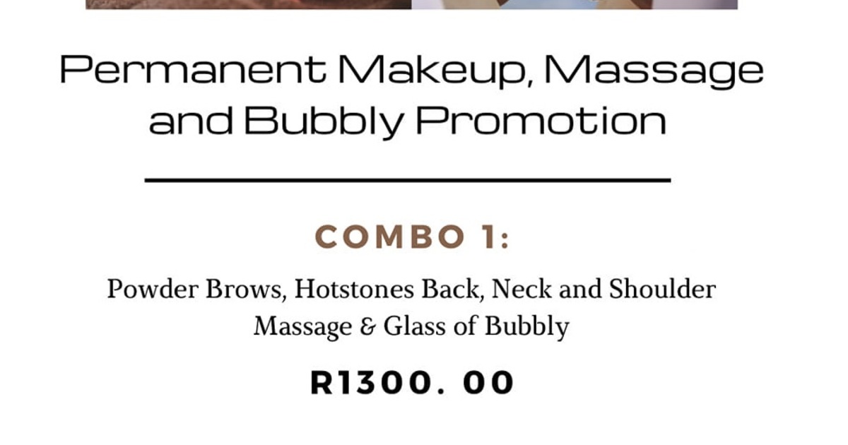 • Powder Brows, Hot Stones Back, Neck and Shoulder Massage and a Glass of Bubbly - R1,300