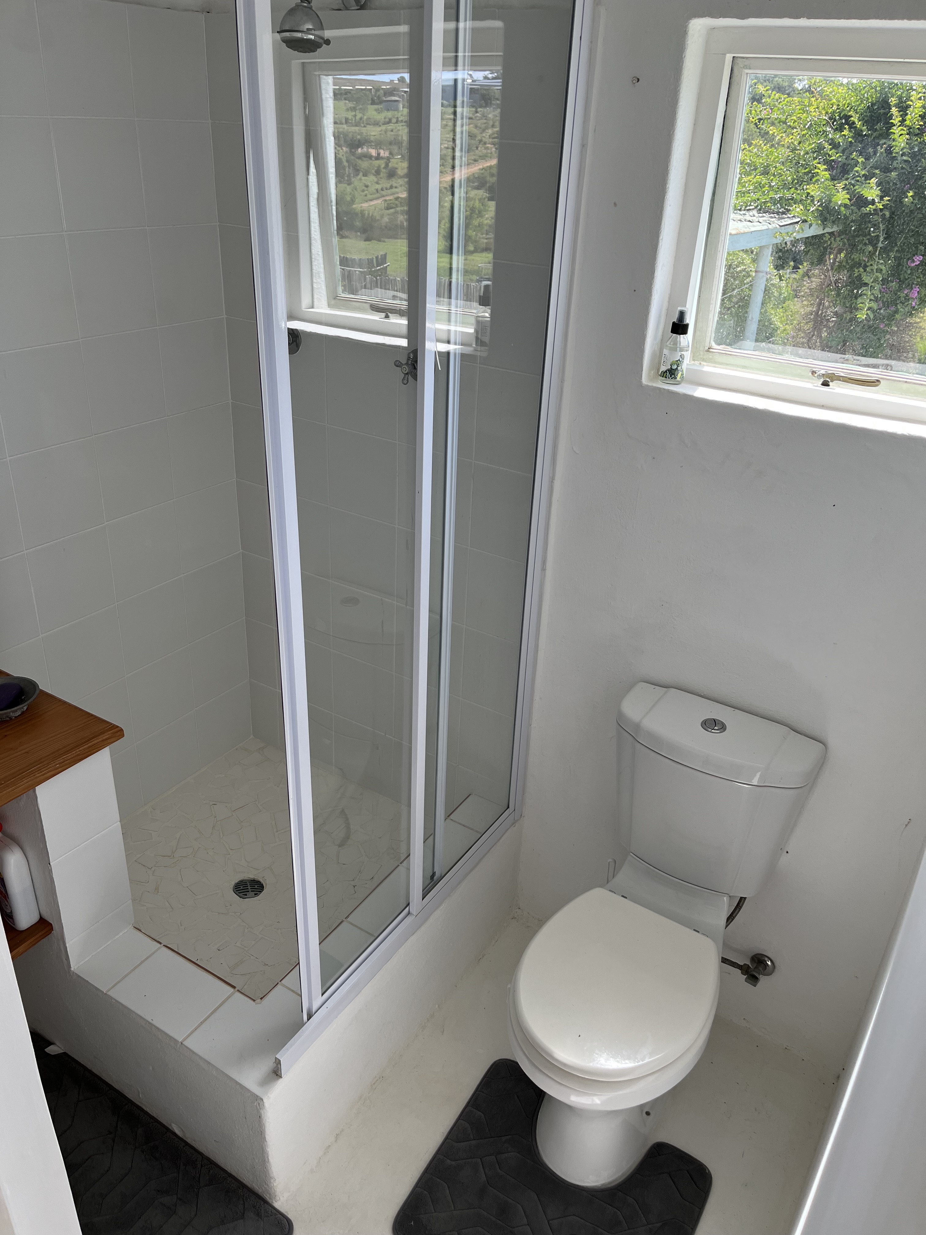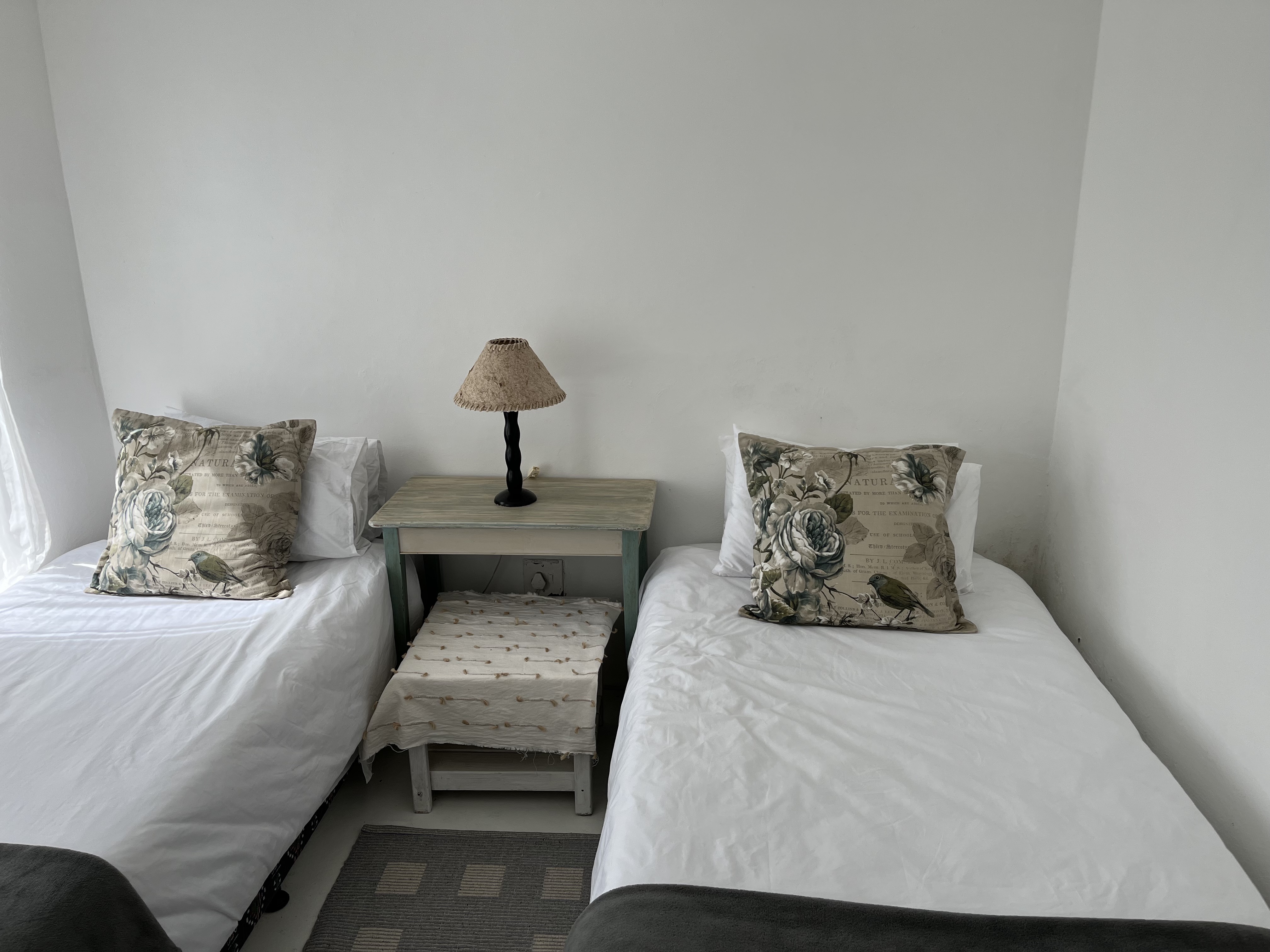 Private property with an outside guest room with a shower en suite. Two single beds, a hanging cupboard with kettle, coffee, sugar, rusks etc. Peaceful, quiet, clean and comfortable. Pets can be discussed.