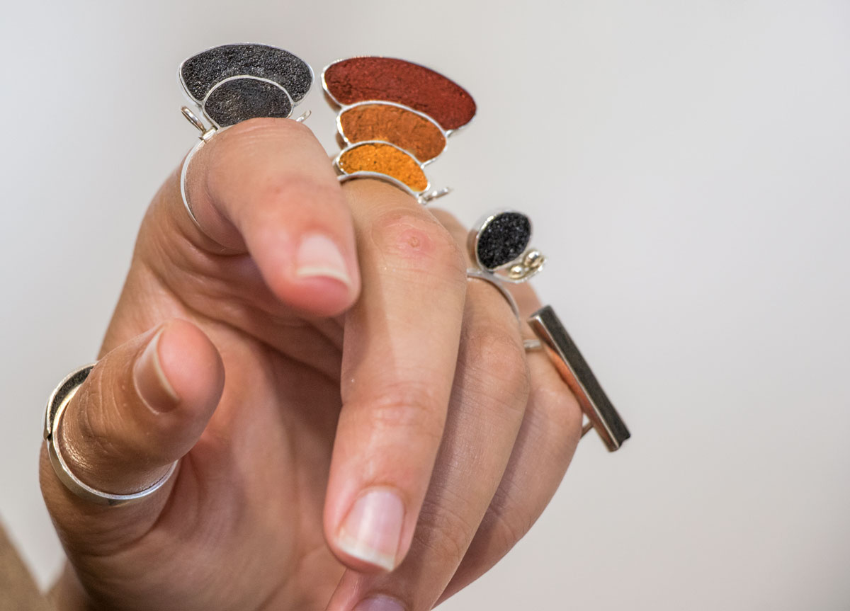 Every now and then Yvonne goes on tour to collect colourful stones and earth particles for her Down-to-Earth range of her jewellery designs.