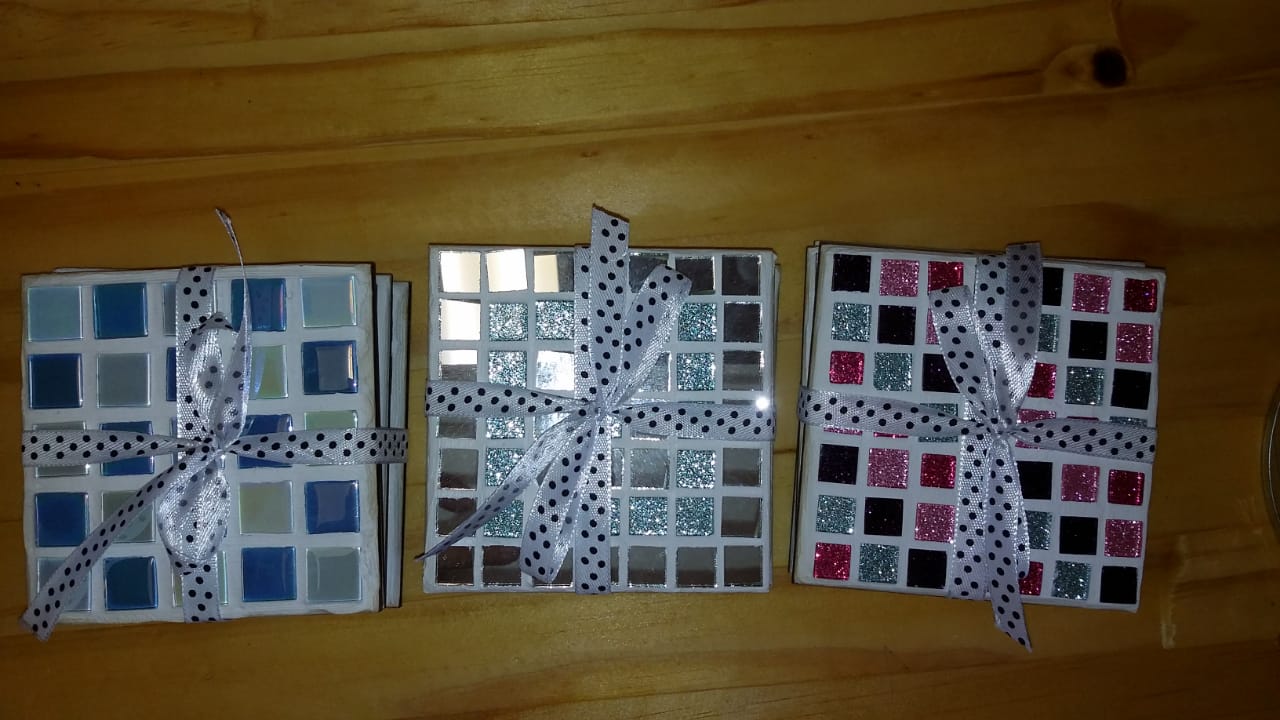 Stunning new coasters with felt bottoms in the shop. Glasses do not stick to them.