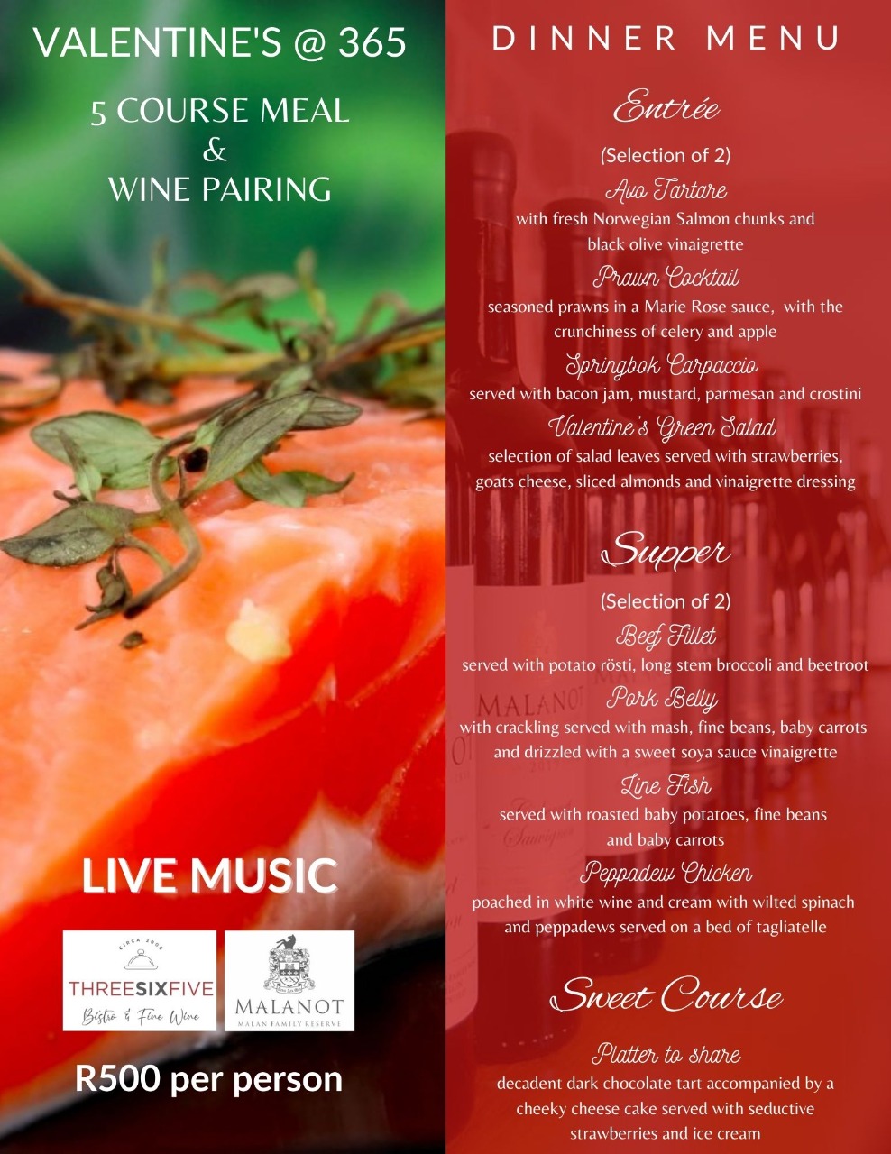 Spoil your valentine this Valentine's Day with a 5-course meal, wine pairing and live music at Bistro Three Six Five!
