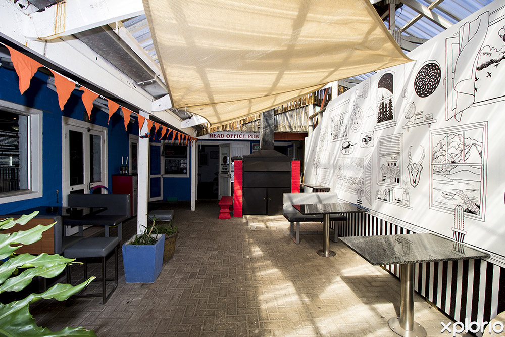 The covered braai area at HQ Pub is ready for your next ‘dop-en-tjop’.
