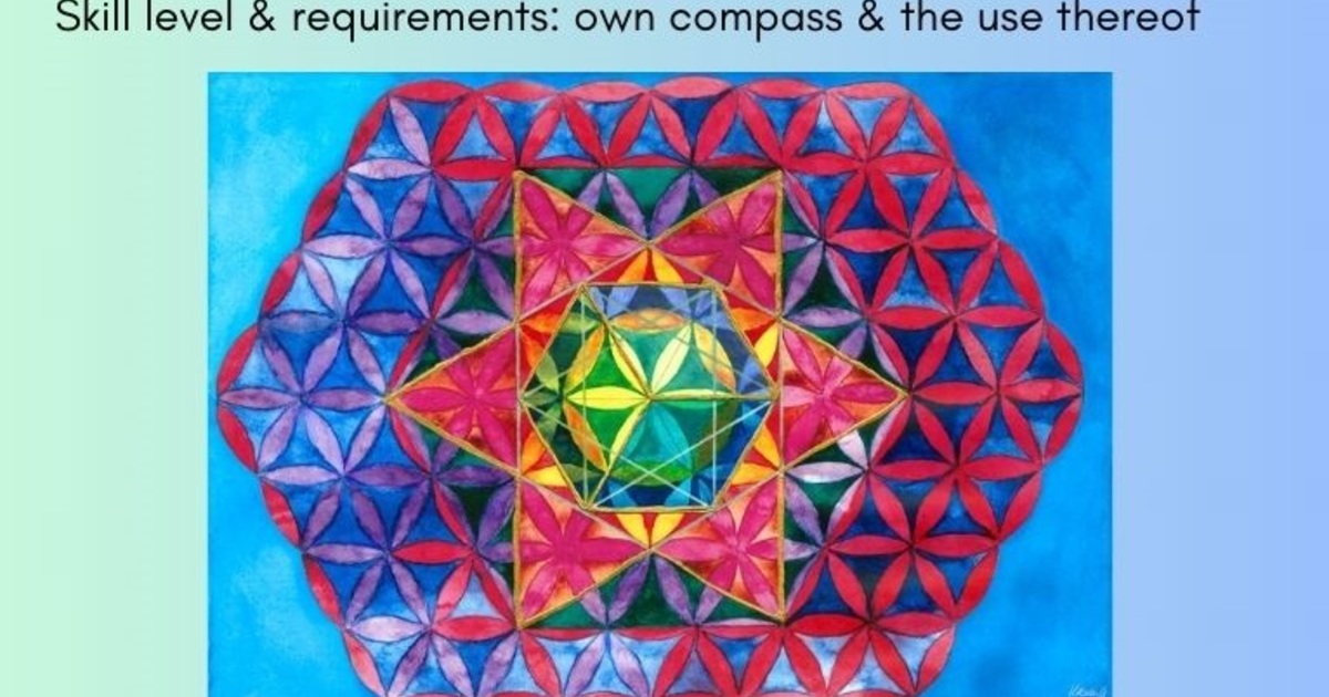 This week, we will construct and personalize with colour: two, six-pointed stars, one within the other, using the flower of life design.