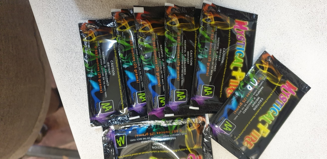 Mystical Fire is a fire novelty item that will add excitement by providing colorful flames for any wood burning fire.