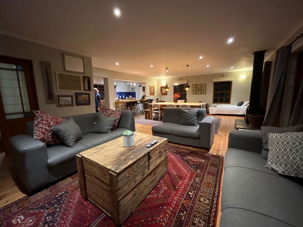 Groenvy Farmhouse, at Beloftebos Farm Cottages, is a spacious four-bedroom farmhouse. The house has a large patio with a built-in braai, an outdoor wood-fired hot tub, and a stunning view of the farm and the distant horizon.