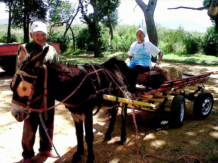 There are friendly farm dogs, sheep and donkeys that all live happily together at Beloftebos Farm. The surrounding countryside offers unlimited amounts of fresh air, blankets of rich Fynbos and towering groves of oak and poplar trees.