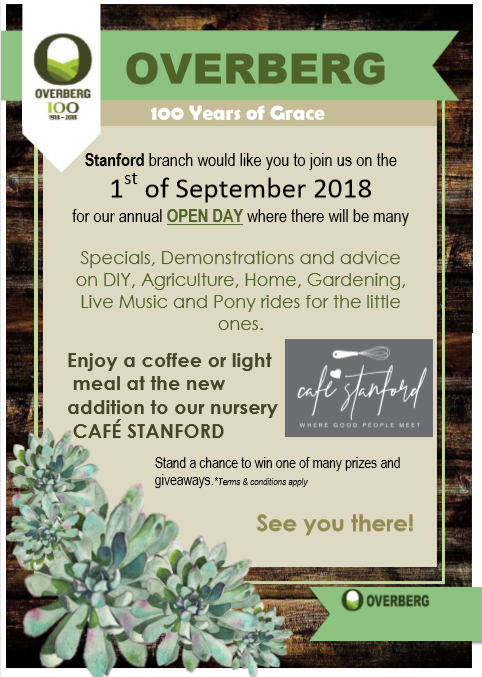 - Café Stanford (Coffee Shop) - the new addition to our nursery will be selling light meals, beverages and boerewors rolls.
