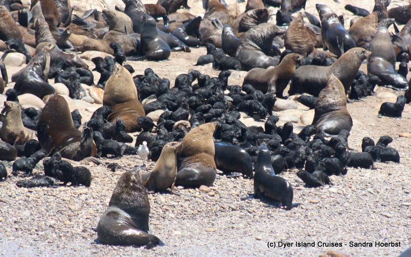 Heading out of Kleinbaai harbour we took our usual route along the coast and scanned the shallow waters for marine wildlife and were lucky to see a couple of Bronze Whaler sharks in the bay, even a shadow of a stingray in deeper waters. On our way to Dyer Island, we stopped for two juvenile African penguins making their way home and closer to the island we counted a couple more adults on a small stretch of beach hiding between all the Cape cormorant. After having also spent time around the Cape Fur seal colony we were heading through deeper waters and found the highlight of today’s tour, a sunfish (Mola mola). What a great day at sea filled with surprises.