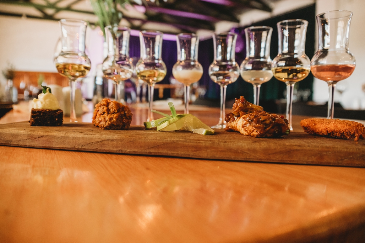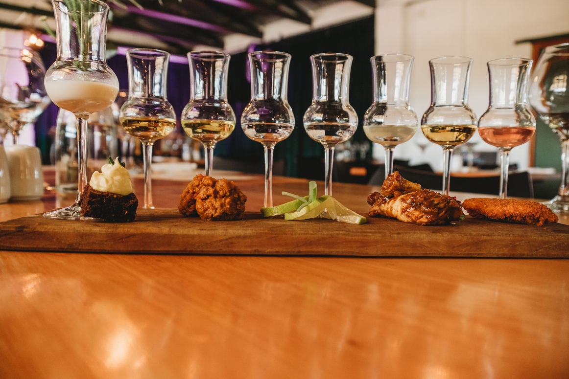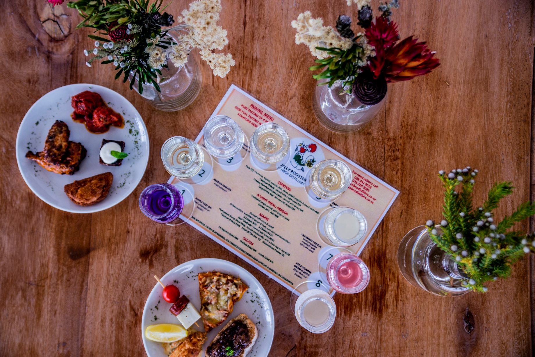 Jolly Rooster @ Fynbos Distillery offers a choice between a set food pairing menu with eight combinations and an à la carte menu that includes a complimentary product pairing with each dish ordered.
