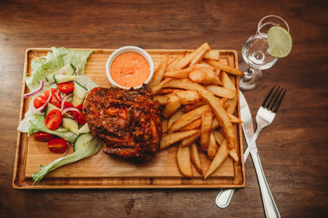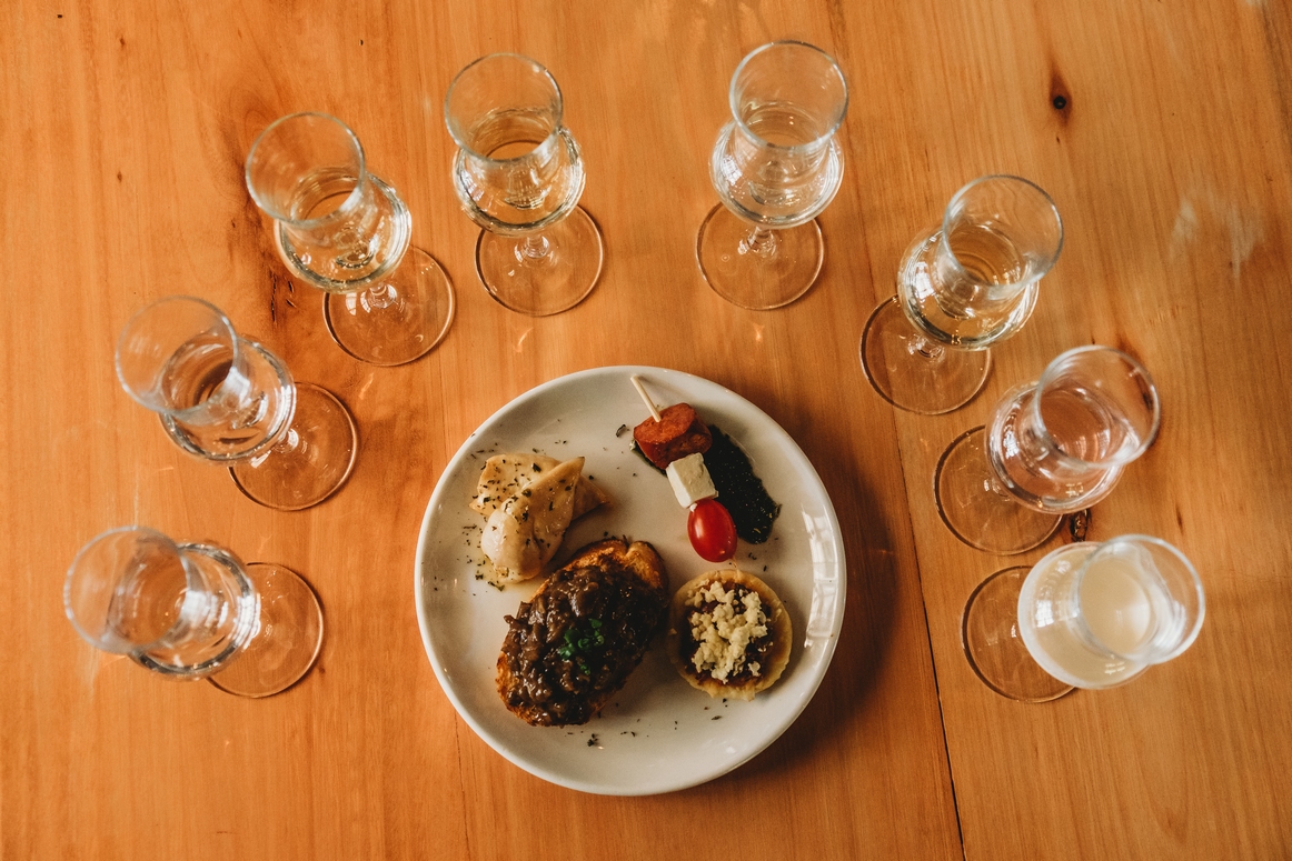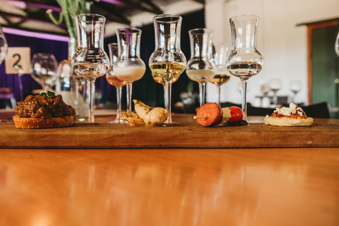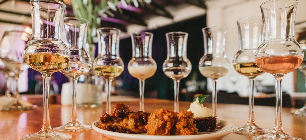 Jolly Rooster @ Fynbos Distillery offers a choice between a set food pairing menu with eight combinations and an à la carte menu that includes a complimentary product pairing with each dish ordered.